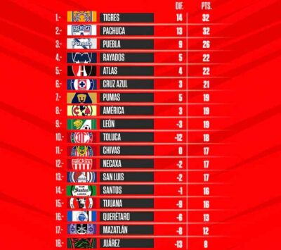 Tabla general de la Liga MX: Clausura 2022, Jornada 14