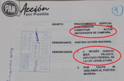 El Partido Acción Nacional en Puebla presentó una denuncia contra el diputado federal de Morena, Ignacio Mier Velazco, por presuntos actos anticipados de campaña y promoción personalizada con motivo de