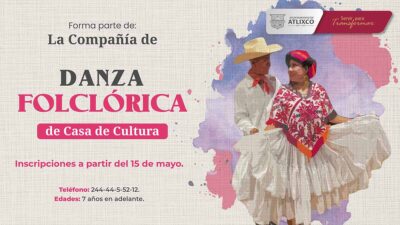 El Gobierno Municipal de Atlixco, encabezado por Ariadna Ayala, convoca a ser parte de la Primer Compañía de Danza Folclórica de Casa de Cultura, a