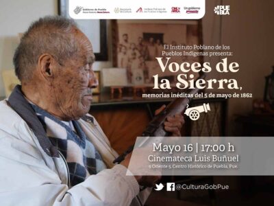 Te recomendamos llegar 15 minutos antes de la exhibición. Martes 16 de mayo 17:00 h El Instituto Poblano de los Pueblos Indígenas presenta: Voces