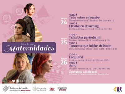 · Del 24 al 26 de mayo, la Secretaría de Cultura proyectará seis filmes en conmemoración al mes de las madres CIUDAD DE PUEBLA, Pue.-
