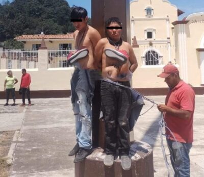 Xochitlán, Pue.- Dos hombres fueron detenidos y amarrados al palo de los voladores en la junta auxiliar de Huahuaxtla, perteneciente al municipio de Xochitlán de
