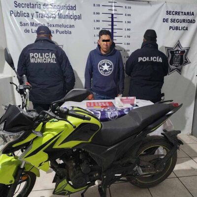 SAN MARTÍN TEXMELUCAN, PUE. – En la junta auxiliar de Santa María Moyotzingo, sobre la avenida Benito Juárez, elementos de Seguridad Pública y Tránsito Municipal,