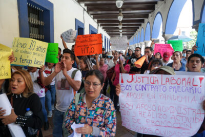 Este jueves, un grupo de trabajadores eventuales de la Secretaría de Salud se congregó frente a las instalaciones de la dependencia, demandando la basificación universal para todos los empleados. Con
