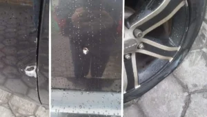 Una pareja fue víctima colateral, luego de que su vehículo terminó baleado en al menos cuatro ocasiones cuando policías estatales llevaban a cabo acciones para detener a
