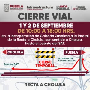Puebla, Pue.- A partir de este lunes primero de septiembre se dará el cierre de circulación en dos importantes vialidades en la ciudad de Puebla, como
