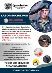 El Honorable Ayuntamiento de Quecholac que encabeza la Presidenta María Guadalupe Martínez Gerardo y la Defensa Nacional te invitan a la jornada de labor social