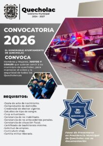 CONVOCA Hombres y Mujeres, JUSTOS Y LEALES que quieran servir a su municipio de quecholac, para mantener el orden y la seguridad de todos los