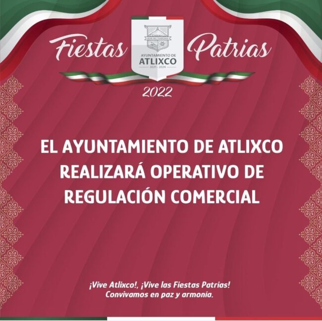 A fin de mantener el orden durante las celebraciones del Mes Patrio y dada la proliferación del comercio alusivo a la fecha, el Ayuntamiento presidido por Ariadna Ayala, a través de la Dirección de Industria y Comercio pone en marcha el operativo Fiestas Patrias del 1 al 16 de septiembre.