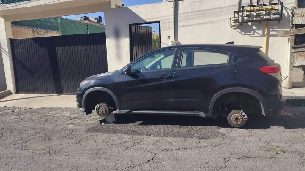 Un nuevo caso de robo de autopartes se registró en la capital poblana, en esta ocasión en la colonia Santa Cruz Buenavista, donde delincuentes dieron cristalazo a un vehículo y también se llevaron los neumáticos.