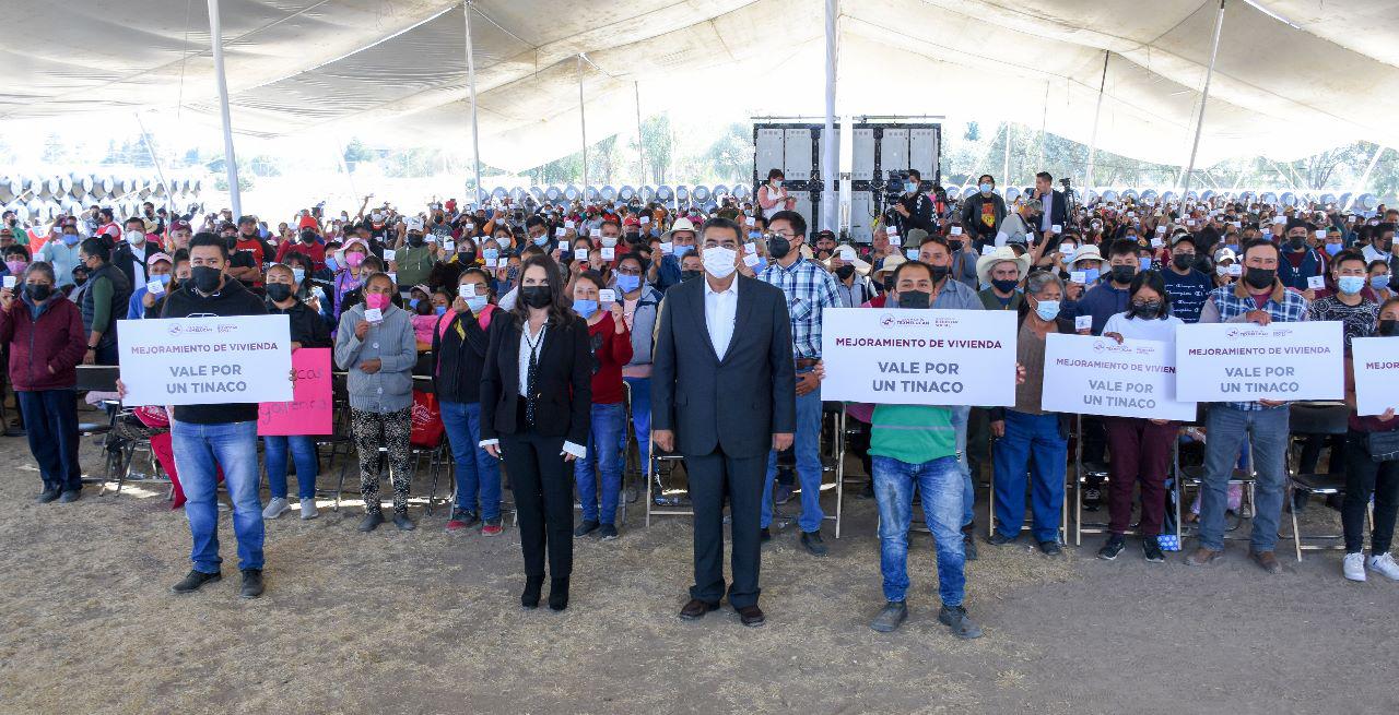 SAN MARTÍN TEXMELUCAN, PUE. – Atendiendo la invitación de la Presidenta Municipal, Norma Layón, el Gobernador del Estado de Puebla, Sergio Salomón Céspedes Peregrina, la acompañó a la entrega de 800 tinacos a familias texmeluquenses de las 11 juntas auxiliares y cabecera municipal.