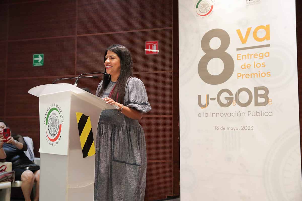 Durante la Octava Entrega de los Premios u-GOB a la innovación pública, la legisladora del Grupo Parlamentario de Movimiento Ciudadano señaló que gran parte del trabajo gubernamental debería tener la visión de anticiparse al futuro con nuevas ideas, “aunque en esa búsqueda no estamos todas y todos”.