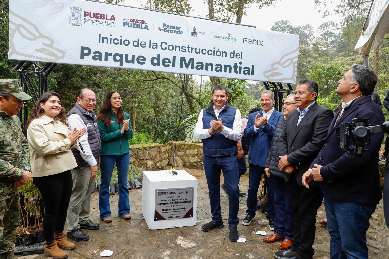 HUAUCHINANGO, Pue.- El gobernador Alejandro Armenta reconoció a las y los empresarios que son socialmente responsables e inclusivos, que se guían bajo la filosofía humanista de la presidenta Claudia Sheinbaum, lo anterior al iniciar el proyecto de construcción del Parque del Manantial en dicho municipio.