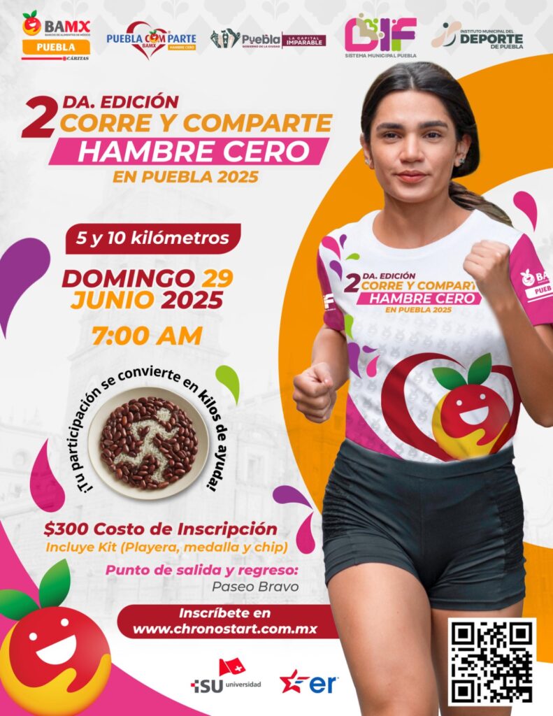 Puebla, Pue. – A fin de reafirmar el trabajo conjunto que realiza el Sistema Municipal DIF (SMDIF) con el Banco de Alimentos “Cáritas” en favor de la seguridad alimentaria en la capital, y por instrucciones de la presidenta del patronato MariElise Budib el próximo 29 de junio se llevará a cabo la 2da. Edición de la carrera “Corre y Comparte: Hambre Cero en Puebla 2025”, con el propósito de recaudar fondos en beneficio del proyecto Puebla Comparte.