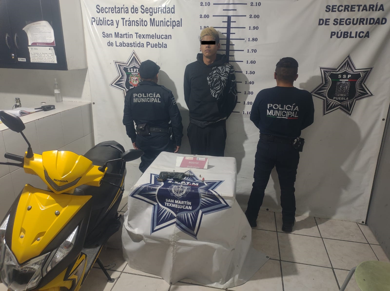 San Martín Texmelucan, Pue. – Al realizar recorrido de vigilancia, los oficiales de la policía municipal, sobre calle Melchor Ocampo, en la junta auxiliar de San Cristóbal Tepatlaxco, una persona les pidió apoyo, mencionando que, le acababan de robar su moto, señalando a un masculino el cual conducía una motoneta de color amarillo con negro.