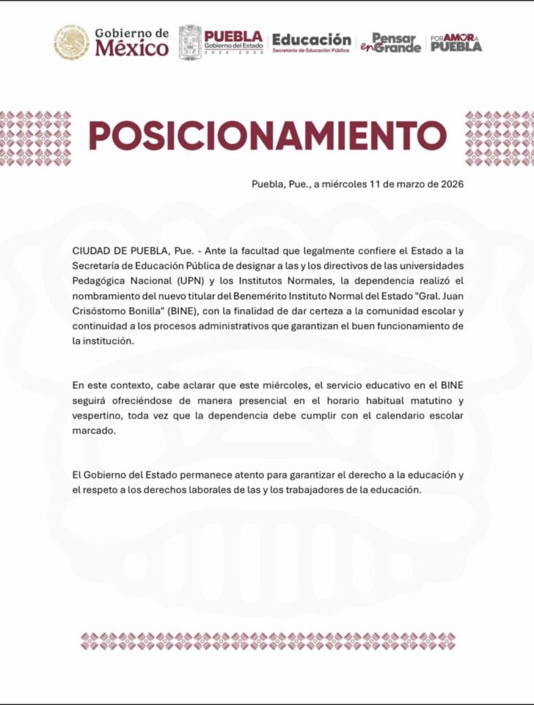 En este contexto, cabe aclarar que este miércoles, el servicio educativo en el BINE seguirá ofreciéndose de manera presencial en el horario habitual matutino y vespertino, toda vez que la dependencia debe cumplir con el calendario escolar marcado.