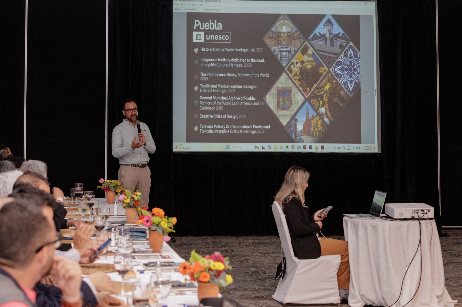 Playas de Rosarito, B.C., 29 de abril de 2025. – Para promover los atractivos, patrimonio y riqueza de la ciudad de Puebla entre viajeros internacionales, de Estados Unidos, Centroamérica y Europa, el secretario de Economía y Turismo, Jaime Oropeza Casas, hizo una presentación del destino a periodistas y cronistas de más de 20 medios especializados, al iniciar el primer día de actividades de su participación en el Tianguis Turístico México 2025.
