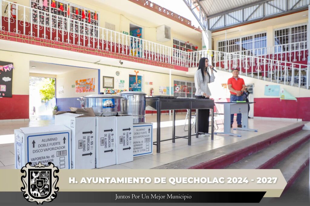El Honorable Ayuntamiento de Quecholac que encabeza la Presidenta María Guadalupe Martínez Gerardo hizo entrega de suministros para el comedor escolar de la escuela José María Morelos.