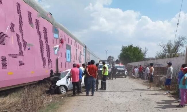 De acuerdo con testigos, una mujer que manejaba la unidad intentó ganarle el paso al tren cuando vio que se acercaba, sin embargo, el auto se detuvo a mitad de la vía situación que generó que fuera arrastrado y la conductora quedará completamente prensada.