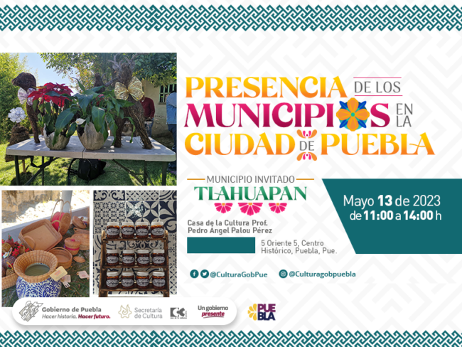 CIUDAD DE PUEBLA, Pue.- Como parte del programa “Presencia de los Municipios”, el gobierno presente de Sergio Salomón, a través de la Secretaría de Cultura, realizará una demostración cultural de Tlahuapan de manera gratuita este sábado 13 de mayo, de 11:00 a 18:00 horas.
